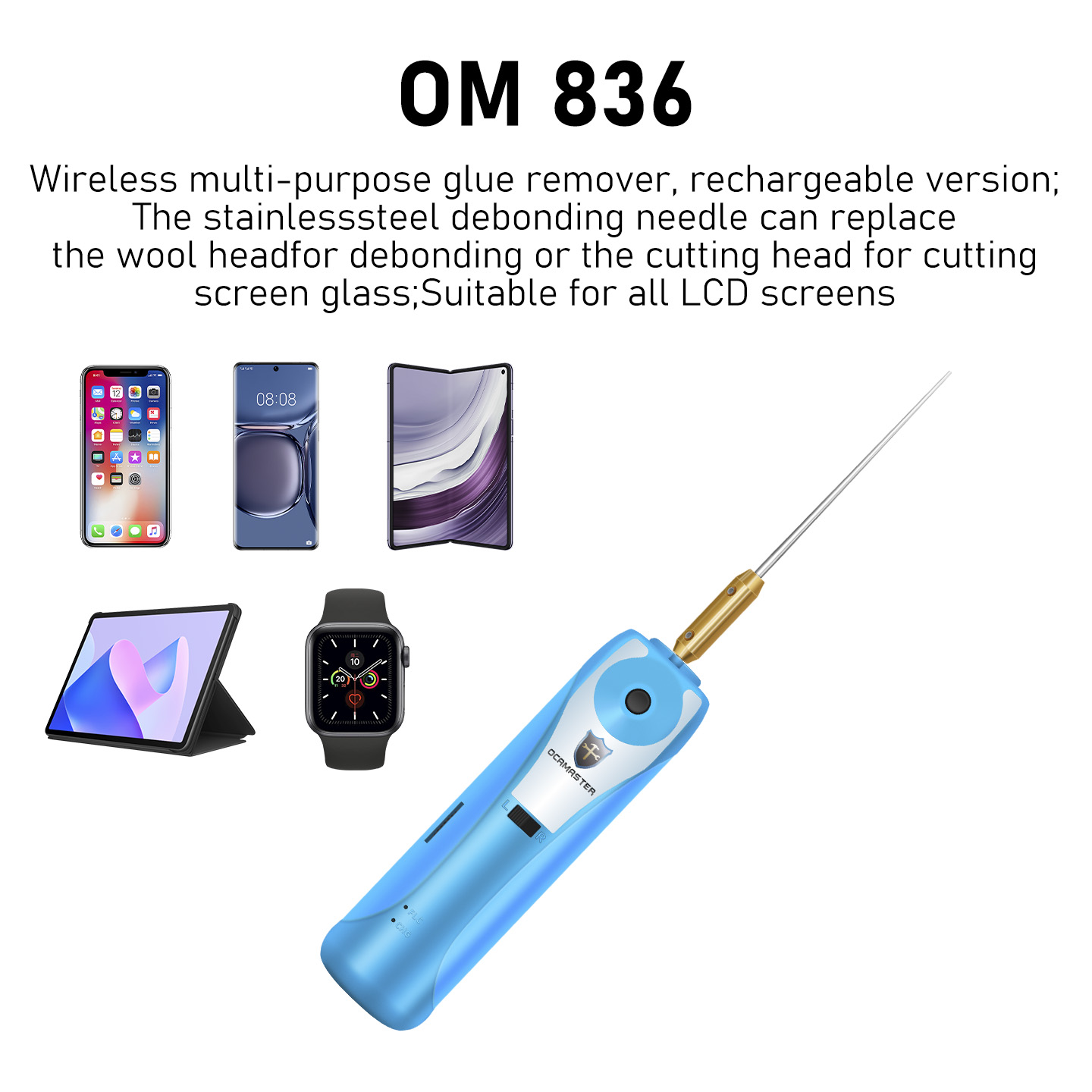 ● Wireless multi-purpose glue remover, rechargeable version;.The stainless steel debonding needle can replace the wool head for debonding or the cutting head for cutting screen glass;. Adjustable speed, low noise, high torque.