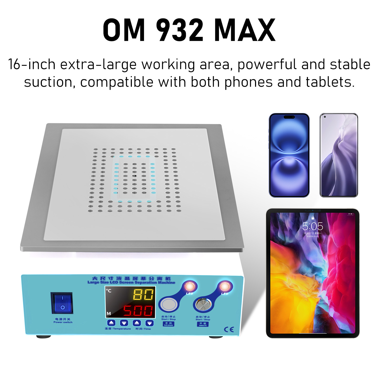 ● The workbench is embedded with a sealed silicone ring, and the mobilephone screen can be directly separated;